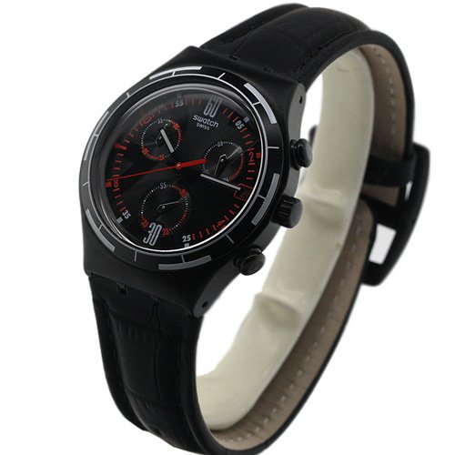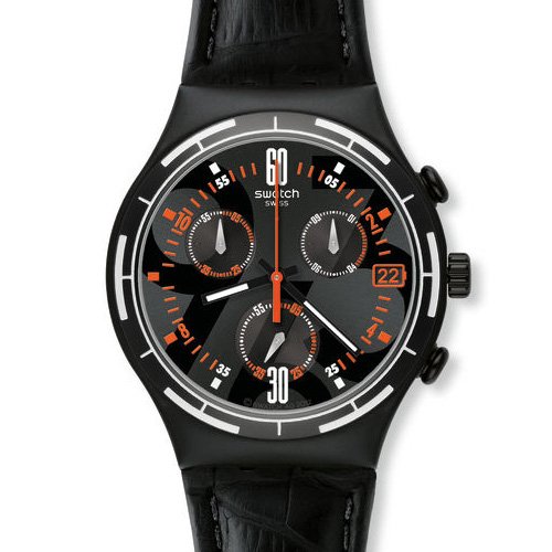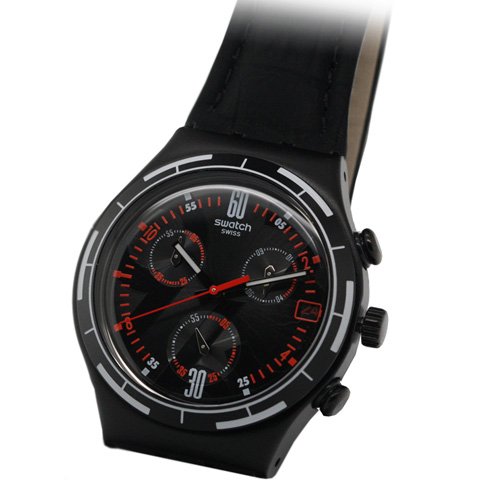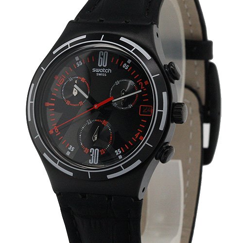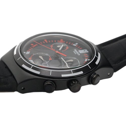 -. Title : Swatch Irony Eruption Black Dial Chronograph Black Leather Mens Watch YCB4023