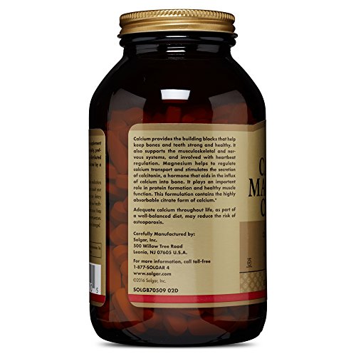 CITRATE BONUS: The combining of calcium and magnesium these Solgar tablets is that in addition to the ways the body benefits from each of these ingredients, magnesium helps to regulate calcium transport and aids in the influx of calcium into bone. This unique formulation contains the highly absorbable citrate form of calcium
