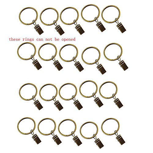 Yueton Pack of 20 Window Curtain Metal Clips with Ring for Rods Up, 1.3" Interior Diameter