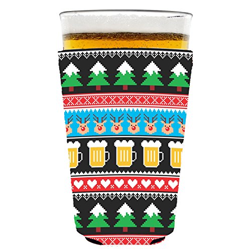 Reindeer and Beer Christmas Pattern Pint Glass Coolie