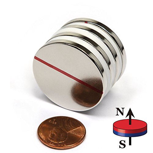 Powerful CMS Magnetics Grade N45 Disc Neodymium Magnets, 1.26” Diameter x 1/8" Thick – Science Projects, Crafting and Hobbies - Pack of 4