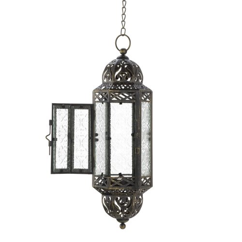 -. Binding : Kitchen -. Brand : Mywholesalegifts -. Color : Black -. Feature : Size: 4" x 4 1/2" x 13" high. / Iron and glass. / Item weight: 1.2 lbs. / Candle not included. -. IsAutographed : 0 -. ProductGroup : Home -. ProductTypeName : HOME -. Title : VICTORIAN HANGING LAMP BLACK METAL AND GLASS CANDLE LANTERN