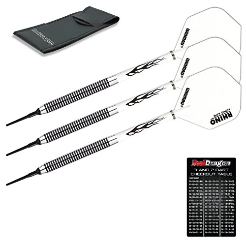 Set of 3 x 18g - 80% premium quality Red Dragon soft tip darts set; Winmau Rhino white extra thick dart flights; Red Dragon white Street Art shafts; Red Dragon bar wallet; Red Dragon checkout card