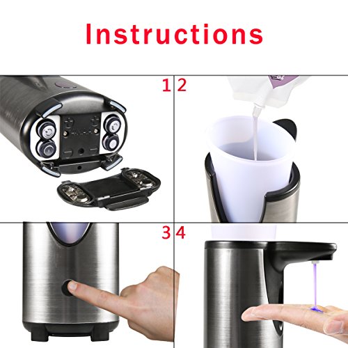 - SENSITIVE AND SUPER EASY TO SET UP - The infrared sensors of soap dispenser won't miss each time touch. And just put into 4 AAA batteries and press the button on the body of the unit for 2-4 seconds with the red light flash for 3 times, then it starts working!