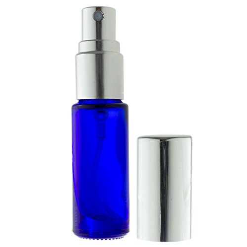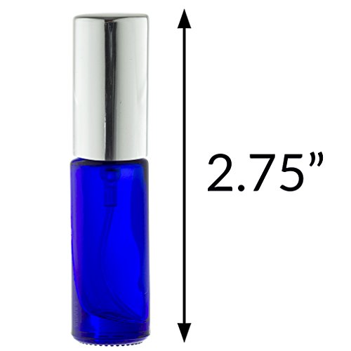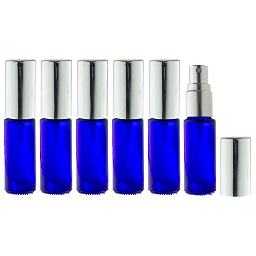 Aromatherapy Small Glass Spray Bottles, 5 ml (1/6 oz) Cobalt Blue Glass - Set of 6 for perfume, essential oils, travel + Travel Bag