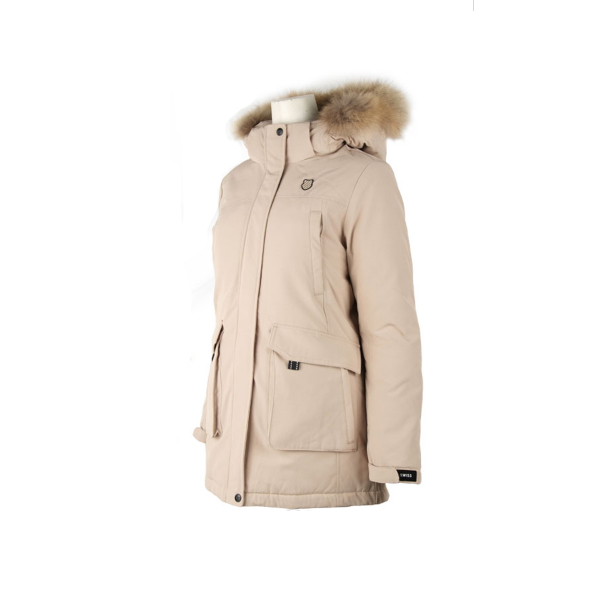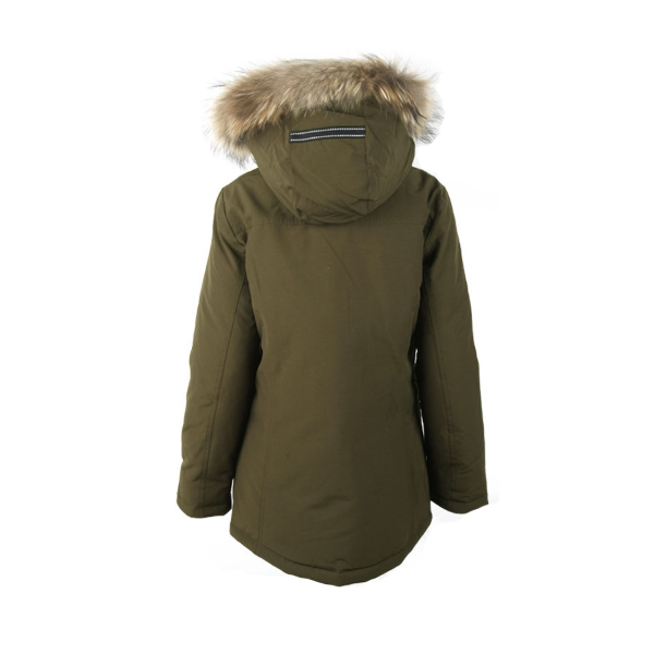 100% 라쿤 FUR가 있는 후드 탈부착 디테일 등으로