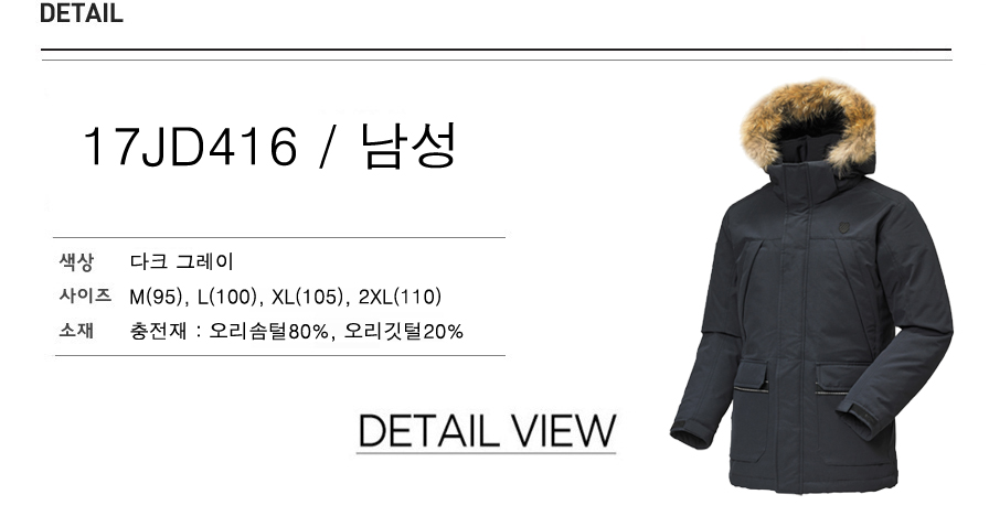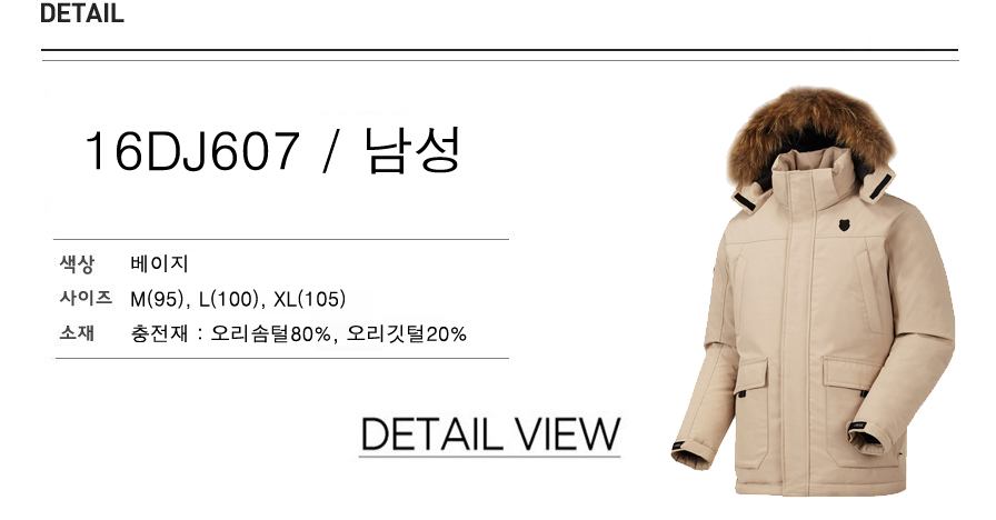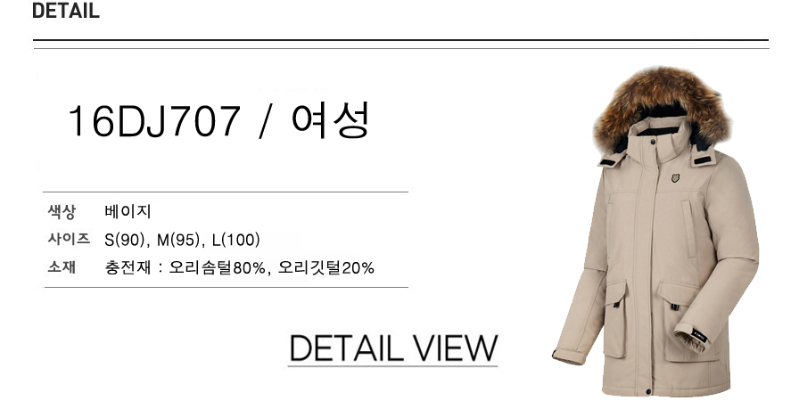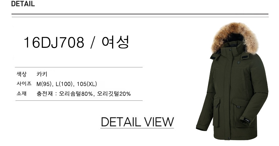 8020의 오리털 덕다운을 사용하였고 상,하단에 실용적인 포켓이 있습니다.