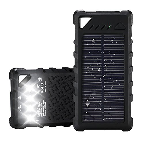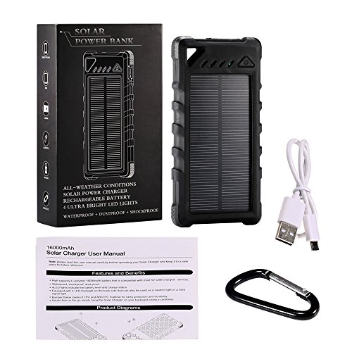 GRANDBEING GrandBeing 2017 Neuest 16000mAh solar power bank solar ladegerat Externer Akku Batterie super Tragbar wasserdicht ladegerat mit 4 Led Taschenlampe IP67 wasserdicht zwei USB-Anschl