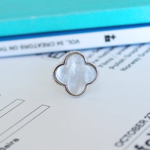 - Feature : This ring is made of solid sterling silver with anti-tarnish rhodium plating and white mother of pearl stone. / Ring is available in sized 6,7,8,9. Clover measures 20 x 20 m. / Comes with a gift box and free shipping!