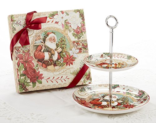 (Delton Products Corp)/Kitchen Dining/Cook's Tools Gadgets/DIRECT FROM USA/Delton Products 2-Tier Porcelain Cupcake Dessert Sandwich Stand, Santa Claus