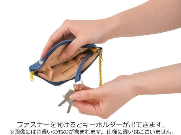 ゆるくて楽しい雰囲気の、ユニークなキャラクターの刺繍がかわいいパス&キーケースです。ファスナーを開けるとキーホルダーが出てきます。大事なカギはファスナーの中に入れられるのでとっても安心なのもポイントです。 |