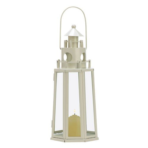 -. Title : 1 X New Iron Glass Pillar Candle Stand Holder White Lighthouse Hanging Lantern Coastal Decor Nautical Theme by Malibu Creations