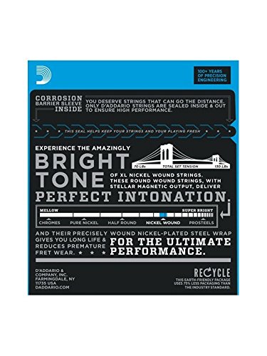 Studio : D'Addario Publisher : D'Addario Product Description D'Addario XL Nickel Wound Electric Guitar strings are world-renowned as "The Player's Choice" amongst players of all genres and styles. XL's are precision wound with nickelplated steel on a hex-shaped core, resulting in strings with a distinctive bright tone and excellent intonation. 3 Pack