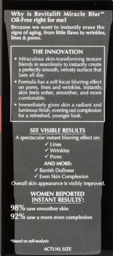 -. Binding : Misc. -. Brand : L'Oreal Paris -. EAN : 0885778606124 -. Feature : This unique finishing cream blends seamlessly into the skin so skin instantly looks and feels smooth, leaving a velvet-soft matte finish / Formulated with Opti-Blur technology which diffuses light on the skin for a soft-focus effect that instantly smoothes lines and wrinkles, hides pores and minimizes little flaws and imperfections / Incorporate into your skincare routine, apply after moisturizing or wear under your foundation for smoother, more even application and wear / Oil-free / Net Wt. 1.18 oz. -. Label : L'Oreal Paris Skin Care -. Manufacturer : L'Oreal Paris Skin Care -. Model : K1583200 -. MPN : 80001866 -. NumberOfItems : 1 -. PackageQuantity : 1 -. PartNumber : 80001866 -. ProductGroup : Beauty -. ProductTypeName : BEAUTY -. Publisher : L'Oreal Paris Skin Care -. Size : 1.18 OZ -. Studio : L'Oreal Paris Skin Care -. Title : L'Oreal Paris Revitalift Miracle Blur Cream, Oil-Free, 1.18 Fluid Ounce -. UPC : 071249268674
