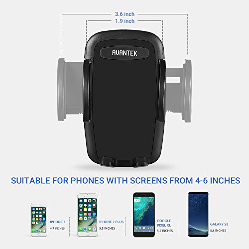 BROAD COMPATIBILITY: Stretchable arms hold devices with screen sizes between 4 in and 6 in; compatible with iPhone 7, iPhone 7 Plus, Samsung Galaxy S8, Note 6/5/4/3, Google Pixel XL, OnePlus 3, LG G6, LG V20, Huawei P10 Plus and more