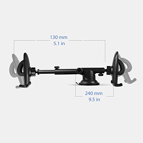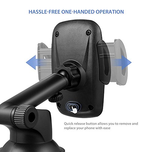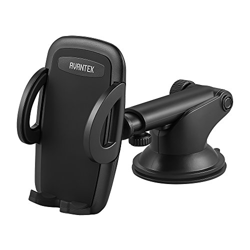 AVANTEK Car Mount, Windshield and Dashboard Mounted Phone Holder with Quick Release Button, Suction Gel Cup, Telescopic Arm,360° Rotation