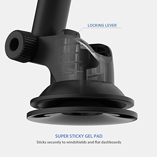 STABLE & SECURE: Firmly mounts to your dashboard or windshield; extra strong suction cup with sticky gel pad provides excellent adhesion; bears up to 10 kg of tension force without losing grip