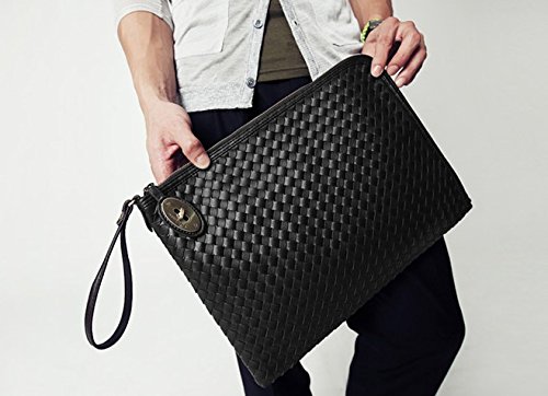 -. Feature : かっこいい編込みデザインのクラッチバッグです / 書類やタブレットPCの収納など、カジュアルからビジネスまで幅広くご使用下さい / サイズ(約):幅32cm×高さ26cm×マチ2cm / カラー:ブラック