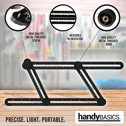 - DURABLE, LIGHTWEIGHT & PORTABLE - Big things come in small packages and there's no cliche that better describes the Angleizer Template Tool by Handybasics. The four-sided ruler design easily collapses and becomes a thin, space saving template tool you can take anywhere. Easily store it in your toolbox, kitchen drawer, craft kits, tool drawers and more!
