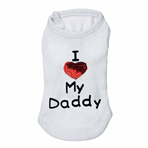 Specifications: Material: Polyester Season: spring, autumn and winter Fashionable, soft and comfy fabric Humanized design? of the cloth,makes your pet more lovely,fashion and difference. Clothing Length:normal Collar:Round neck Decoration:Letter Pattern Type:Character Style:Fashion Size:XXS,XS,S,M,L Size Details: Size:XXS _ Bust:24cm/9.4" _ Neck:16cm/6.3" _ Length:16cm/6.3" Size:XS _ Bust:30cm/11.8" _ Neck:18cm/7.1" _ Length:19cm/7.5" Size:S _ Bust:36cm/14.2" _ Neck:22cm/8.7" _ Length:24cm/9.4" Size:M _ Bust:42cm/16.5" _ Neck:26cm/10.2" _ Length:29cm/11.4" Size:L _ Bust:48cm/18.9" _ Neck:30cm/11.8" _ Length:34cm/13.4" 0