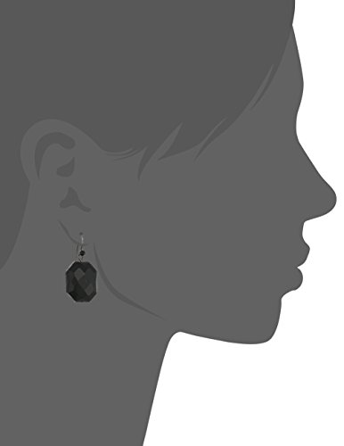 Gold tone drop earrings featuring black color octagon-shape faceted beads with light topaz color crystals accent at the post