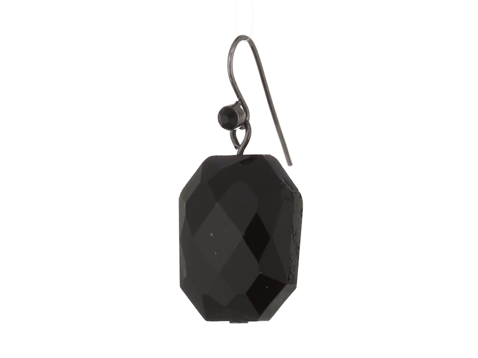 Bold, faceted black color beads hang from French wire hooks which are accented with small topaz color crystals at the post. A style staple that goes great with any outfit.