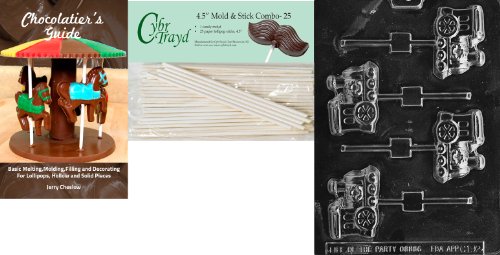 Cybrtrayd 'X-Mas Engine Pop' Christmas Chocolate Candy Mold with 25 4.5-Inch Lollipop Sticks and Chocolatier's Guide
