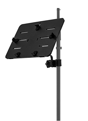 -. Feature : Stand Mount Tablet Holder Fits Tablets with dimensions of 7" to 10" / Adjustable ball-joint for any performance angle / Heavy duty clamp system mounts to most any mic stand or hardware.
