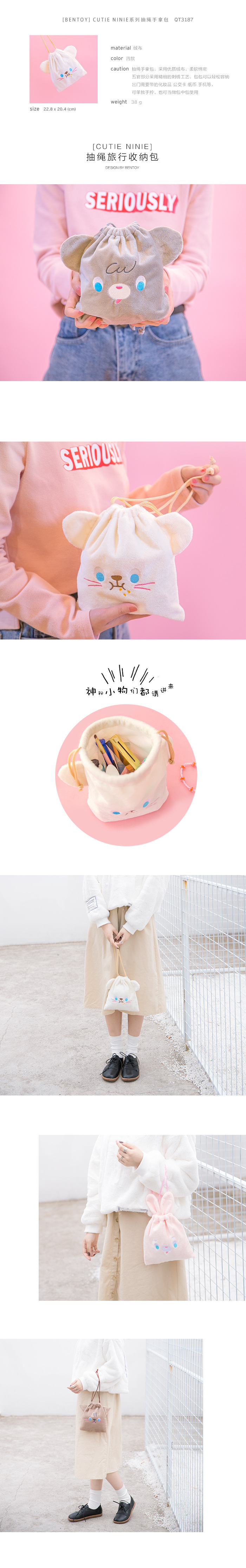 Bentoy動物巾着バッグ下着アクセサリー巾着ポケット旅行分割ベルベット収納袋