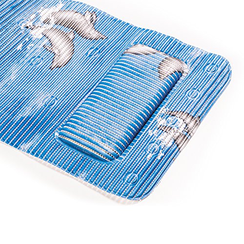 -. Title : Tatkraft Dolphin Extra Long Non Slip Bath Mat with Relaxing Bath Pillow 124X36 cm
