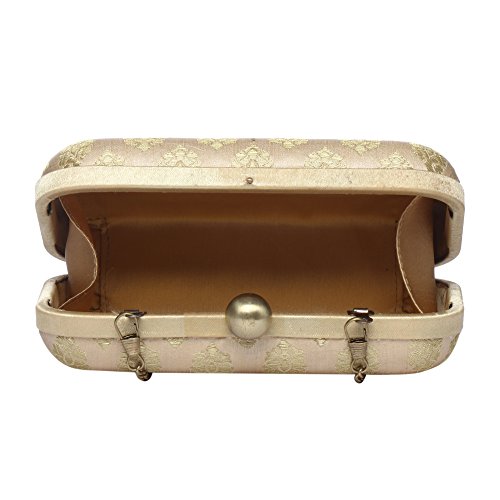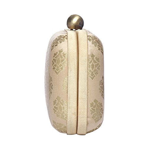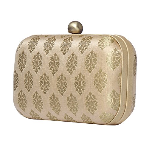 Product Description Brand Description Monokrome New York is an Indian brand offering versatile bags for all occasions and age groups. Our team in New York City works diligently to get you the fashion straight from the runways. All our products are exclusive, with Indian workmanship and global appeal. We are adorned with the people who value individuality, collectability and quality and the people constantly inspire us to create new shift in the essence of runway trends. We are special We are abreast We are fashion We are made in India Design: The hard box clutch has a superior antique brass finish with a bobble opening. The inside is lined with rich satin with Monokrome New York logo and is ideal to carry few currency, credit cards, lipstick and can also fit your IPhone 7 along with it. Material: The clutch is made from silk cotton brocade/jacquard material. Brocade is known for its rich vivid colours, textures and patterns. It is a special hand woven fabric in silk in historic streets of Banaras. The use of multiple colours with gold and silver yarn accentuate the look of the fabric Hardware: the clutch has a size of 6"X4" (15.5cmX4.2cm) and comes with a detachable shoulder strap chain for convenience. The hardware has been tested and is electroplated to prevent rusting. All the products undergo rigorous quality check multiple times from production till packaging. Washing instructions: The product is made of delicate fabric and need to be dry-cleaned only. Keep the product away from moisture and to increase its life keep it in the dust bag in which it will be packed and delivered when it is not being used. Packaging: We at Monokrome New York know how important your bag is for you. Hence to increase the life of the bag the bag is carefully packed to withstand any shock and damage that it may incur during transportation. The bag comes in a Monokrome New York stamped dust bag and we recommend you to use it to store your bag when not in use. 0