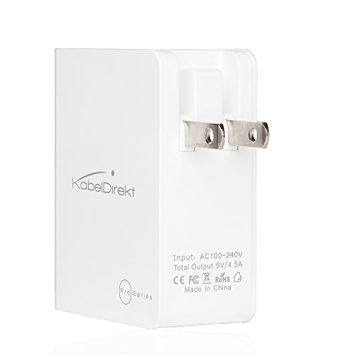 KabelDirekt 22.5W / 4.5 Amps 3 Port High Speed USB Wall Charger with IDD Technology (Intelligent Device Detection) - Perfect for all iOS & Android devices and every other device with an USB port - White - PRO Series