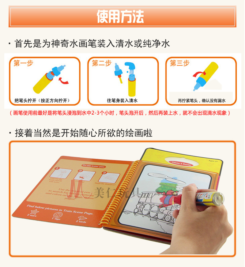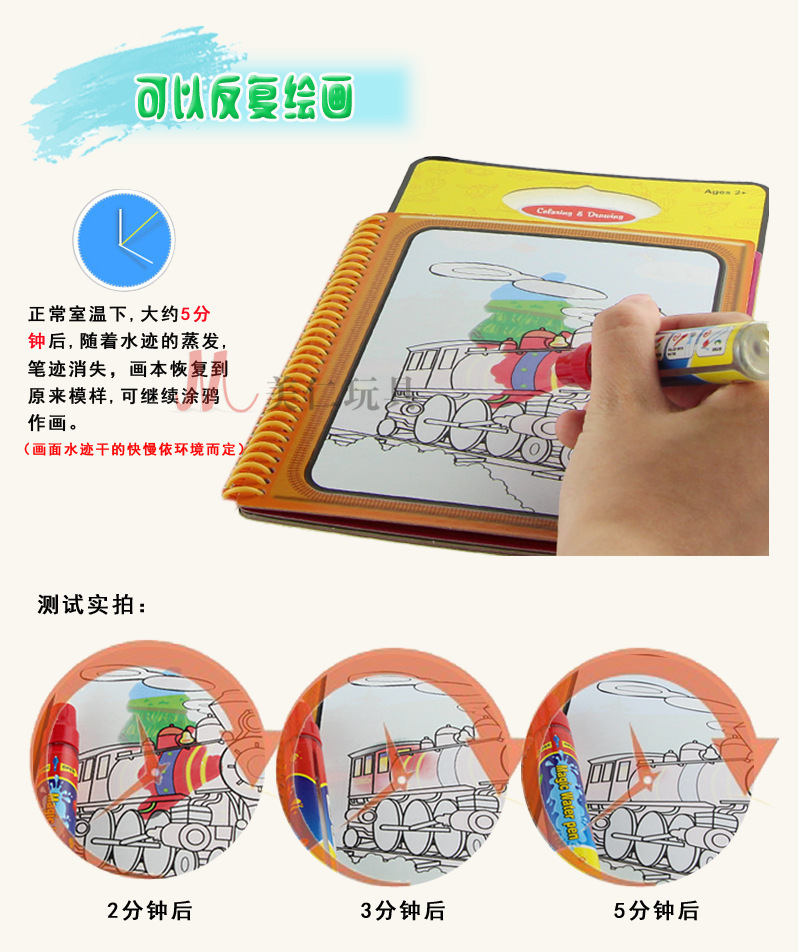 【Features】 pen dye is water, easy to clean, not afraid of baby to eat; painted with a pen immediately after the change of color, full color; a few minutes later, the color will automatically disappear, can be used repeatedly, very environmentally friendly; Dirty yourself, dirty home.