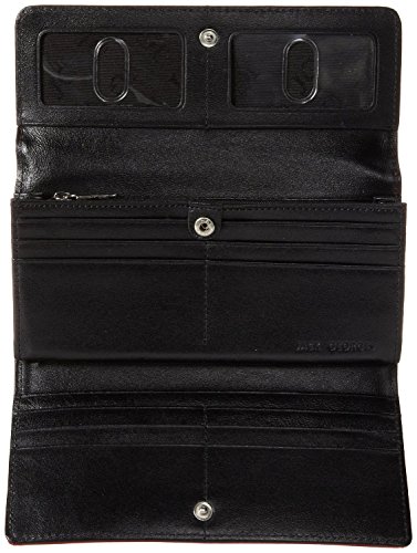 -. Feature : Dual ID-windows / slots for 12 credit cards / Dimensions: 4 x 7.5. Weight: 0.2LB / a zippered outside change compartment / two large pockets hold your receipts, notes, etc.