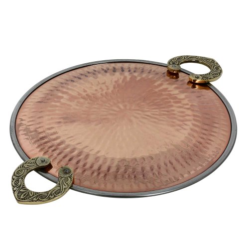 -. Feature : AN ESSENTIAL INDIAN DINNERWARE DESIGN Used to present curries, daal, biryani, condiments & bread / FUNCTIONAL & FASHIONABLE Stainless steel surface is safe for food contact; Copper bottom adds style / EASY TO CARRY Engraved bronze handles make it simple to carry food to the table / PERFECT SIZE FOR SERVING Measures 8 inches in diameter; WEIGHT 500 grams / ABSOLUTE FINEST QUALITY Artisan crafted in North India