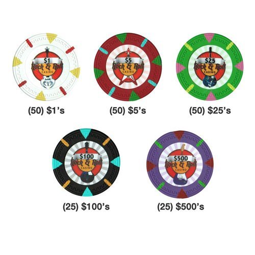 • Includes 50 $1, 50 $5, 50 $25, 25 $100, 25 $500 chips