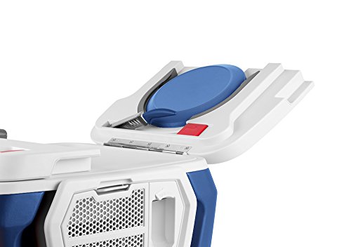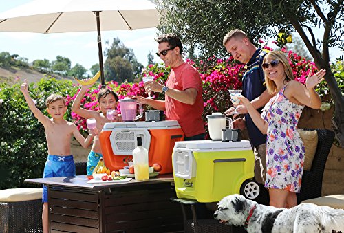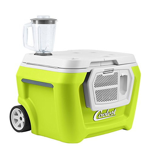 Made for fun and built to last, the Coolest is like an over-eager dog begging you to get outside. From backyard to beach, from lake to a tailgate, the Coolest turns good times into great memories with family and friends. The Coolest Cooler includes: · Ice-crushing Blender powered by 20V rechargeable Lithium ion battery (good for 16-24 pitchers of cocktails or smoothies) · Removable Outdoor Bluetooth Speaker with dual drivers and a resonator plate · Waterproof USB Charger to charge phones or other devices · LED Light in lid to find your favorite beverage after dark · Built-in Bottle Opener with Magnetic Cap Catcher · (4) Built-in Plates, (1) Ceramic Knife, Corkscrew, Removable Divider/Cutting Board · Done-in-One Tie Down Bungee Cord to haul your gear · Stainless Steel Axle and Hinges, Double-wide Rubberized Wheels, and Aluminum Telescoping Handle are built to last