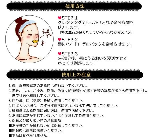 | 透明なゲル状シートのハイドロゲルが、唇にぴったりと密着。ハイドロゲルが、体温に反応してとろけ出し、贅沢な美容成分が唇の奥深くまで浸透。高保湿成分配合で、うるおいとハリのあるふっくら唇へと導きます! |