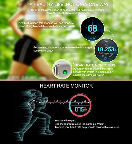 Provide Heart Rate Monitoring.A28 Heart Rate Monitor is the Same Sensor with Iwatch the Measured Result is The Same as Iwatch