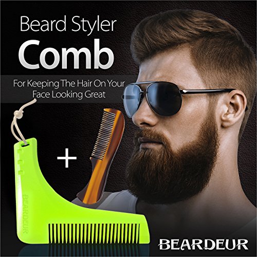 Beardeur Beard Styling & Shaping Template Comb Trim Tool -Beard Shaper Guide for Line Up & Edging -Use with a Beard Trimmer or Razor to Style Your Beard...