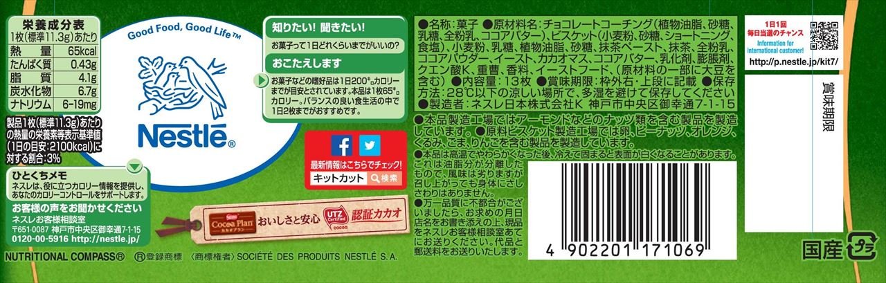 【Production / Raw Materials Commitment】 Raw Materials: Kit cut is the best feature We emphasize the sense of crispness of the wafer and chocolate, we use the optimum raw material to realize the taste suitable for that texture