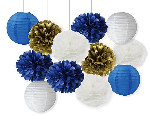 -. Title : Navy Blue Gold Wedding Decoration 12inch Tissue Paper Pom Pom Paper Lanterns for Navy Blue Themed Party Wedding Paper Garland, Bridal Shower Decor Baby Shower Decoration