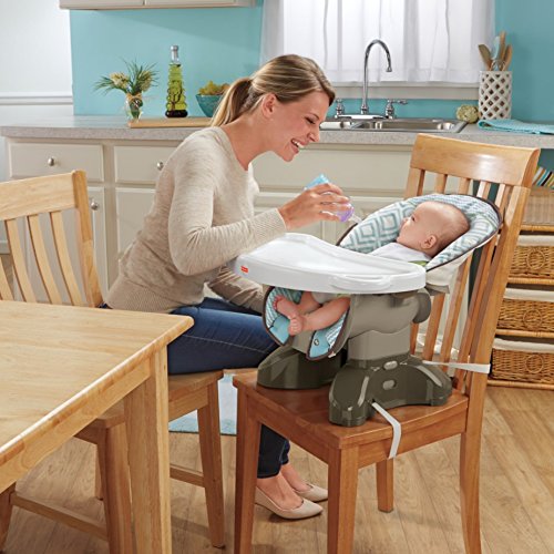 -. Feature : Straps easily & securely to most kitchen or dining chairs / Two height adjustments, three recline positions / Dishwasher-safe tray with Fastfinder Link-One-hand tray removal / Machine washable 5-point restraint converts to 3-point as baby grows / Removable seat back and tray (for toddler booster seat)