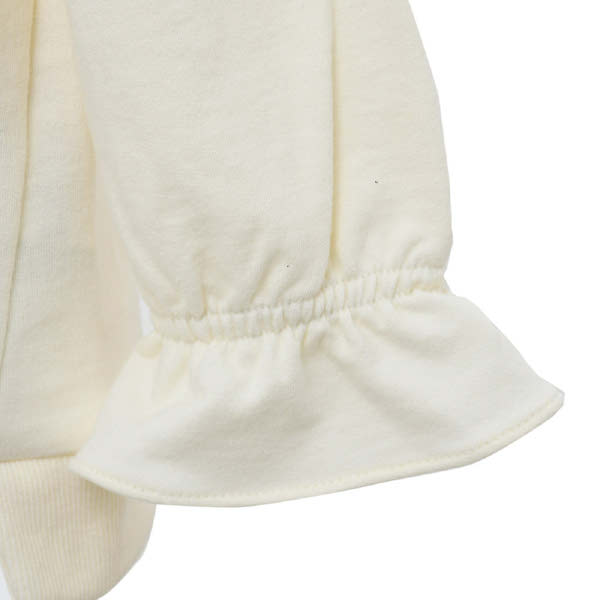 -손목에 이벤드로 프릴디테일로 사랑스러움을 표현한 아이보리 롱티이다