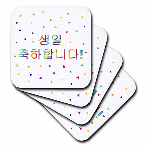 3dRose cst_202042_1 Saeng-Il Chughahabnida Happy Birthday in Formal Korean Colorful Text Soft Coasters, (Set of 4)