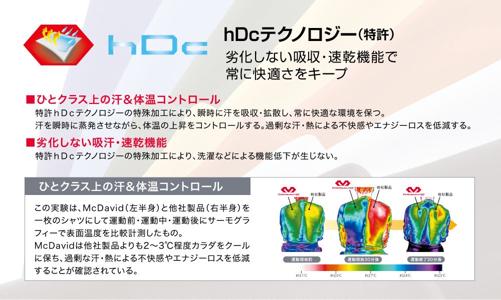 Power mesh hDc is high sweating, quick drying and support power compatible, reduce muscle fatigue / swelling, suppress excessive sweat stuffiness and cold.