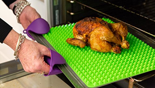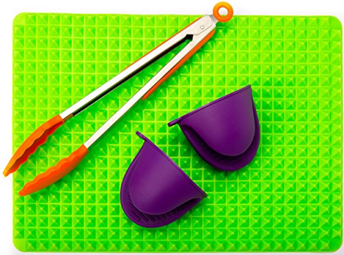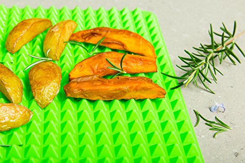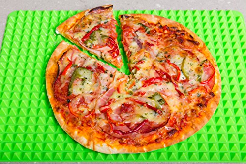 Studio : Bright Dezigns Publisher : Bright Dezigns Product Description PYRAMID BAKING MAT is Nonstick and durable with no greasing necessary, replaces parchment paper and sticky sprays when baking. Easy to clean and flexible just soak immediately in hot soapy water then simply use a cleaning brush for the final clean. It is dishwasher, oven, microwave and freezer safe. NOT for use on stove top or over naked flame or directly on BBQ Plate. Can be easily cut to any size and rolled for easy storage.