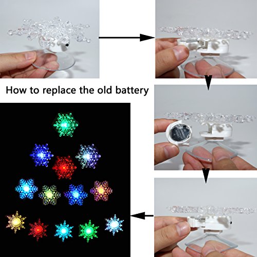 - Each snowflake includes 2 “ CR2032” batteries which can be easily purchased.