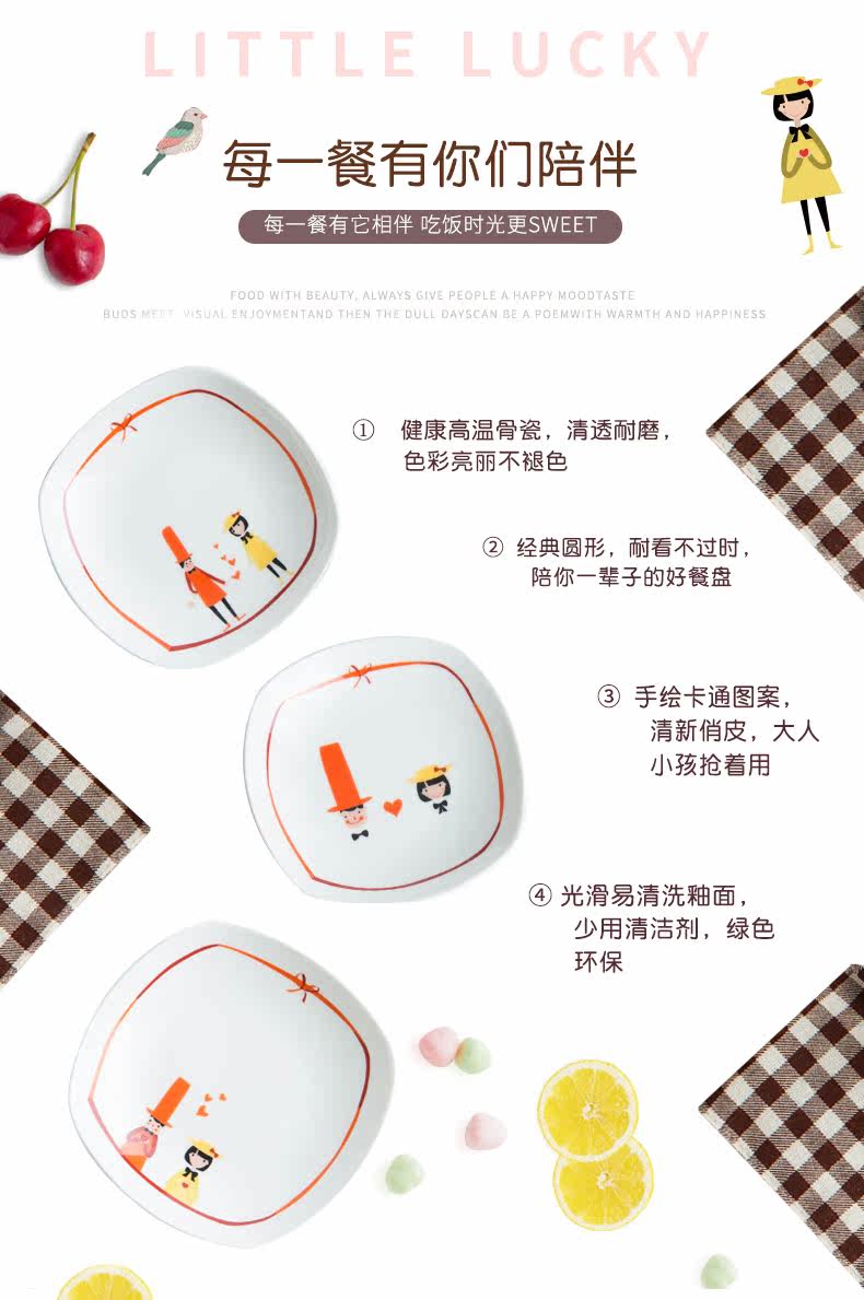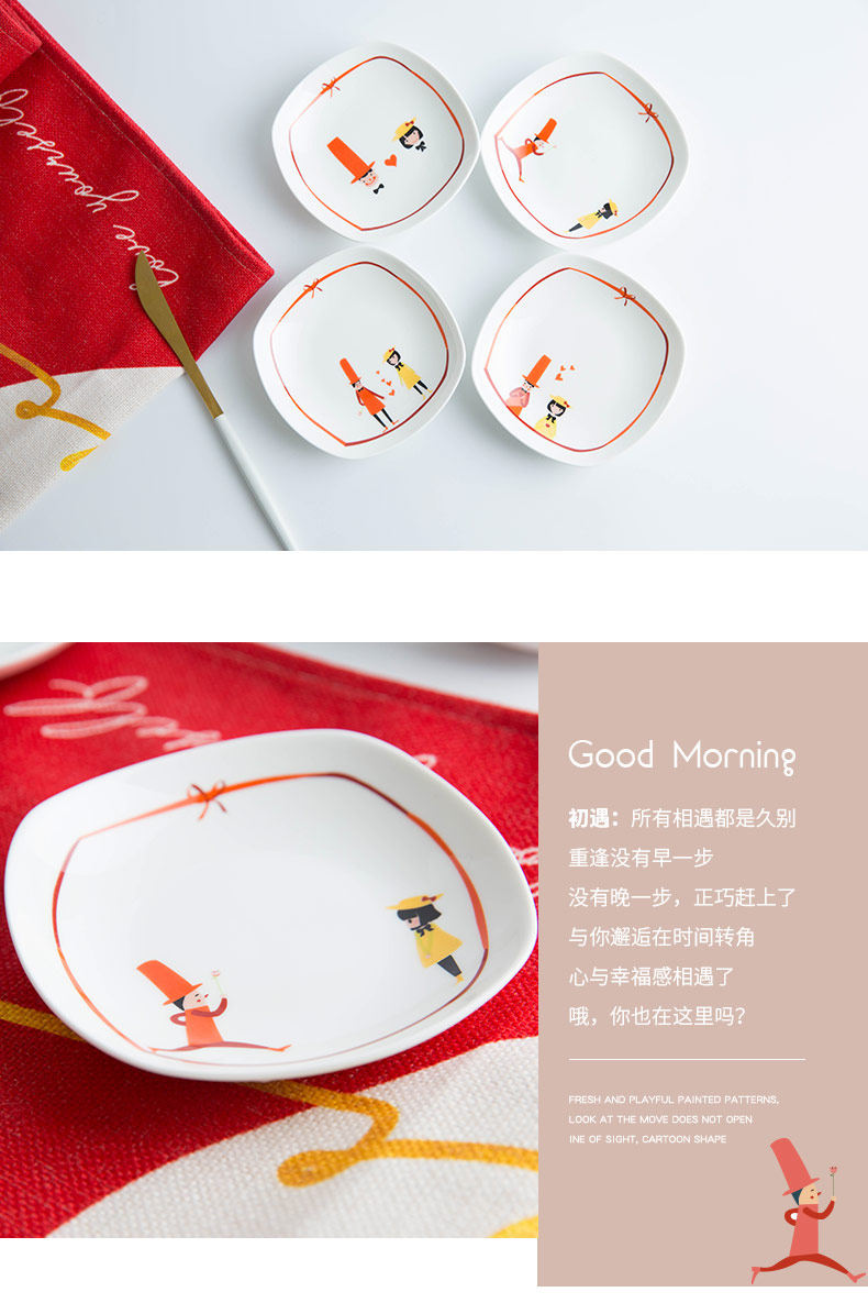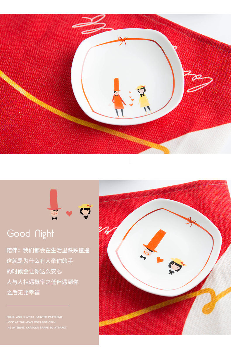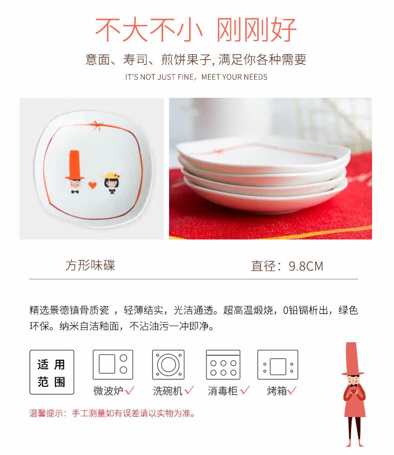 卡通原创方形味碟小吃碟酱料碟小盘子创意餐具鱼碟子家用