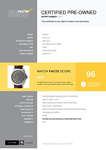-. Feature : Omega De Ville 4832.40.31 with 6.5 - 8 Inches band, stainless-steel bezel and grey dial / Authenticated by WatchFacts. Grade Rating: 96 / Condition: Mint / No papers offered with this watch / Automatic-self-wind movement / Watch year: 2010